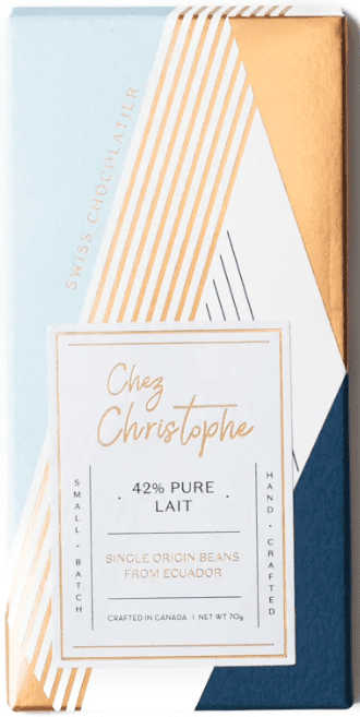 Chez Christophe’s 42% Pure Lait Handcrafted Chocolate Bar is a classic milk chocolate made in the Swiss tradition. With a higher cocoa content than typical milk chocolate, it offers a rich cocoa flavour balanced by smooth, creamy milk notes for an indulgent yet refined experience.